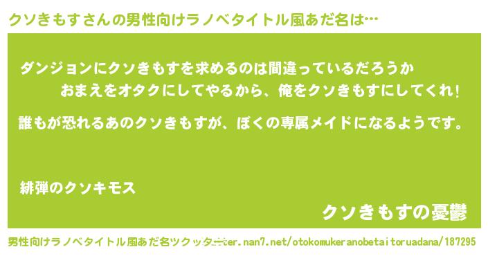 | 意味不明あだ名 | 『永久保存クソきもす』 |
