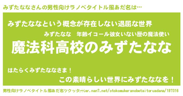 | 女子向けラノベタイトル風あだ名 | 『みずたなななんてお断りですっ。』 |