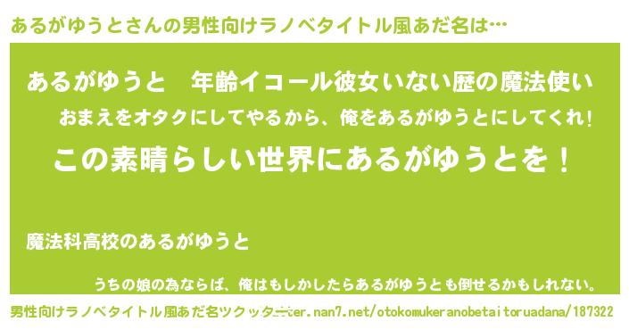 | 胡散臭い通販商品みたいなあだ名 | 『あなたにだけ特別に提供する100年もののヴィンテージワイン…その名も「あるがゆうと」』 |