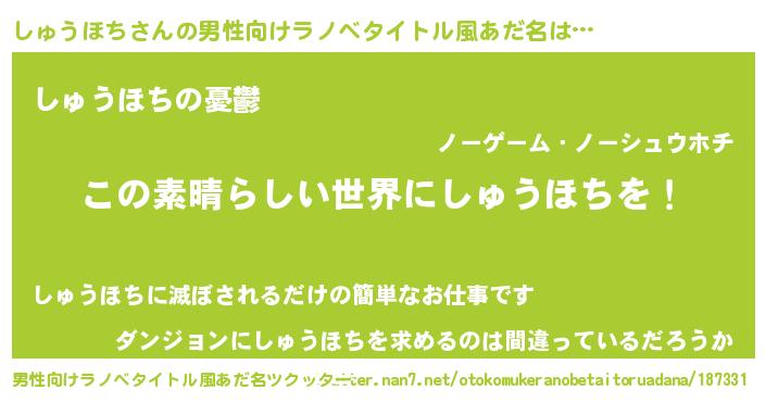 | 女子向けラノベタイトル風あだ名 | 『乙女ゲームの破滅フラグしかない悪役しゅうほちに転生してしまった…』 |