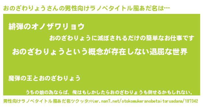 | 意味不明あだ名 | 『永久保存おのざわりょう』 |