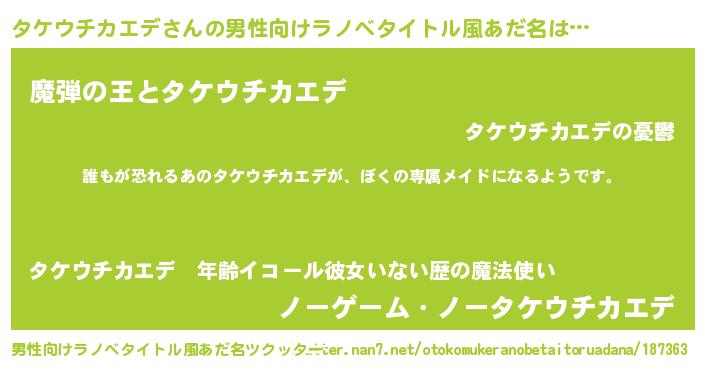 | ヘコむあだ名 | 『タケウチカエデ(小並感)』『タケっふぃ~』 |