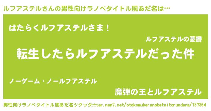 | ヘコむあだ名 | 『ルフっふぃ~』『ルフアステル(遠い目)』 |