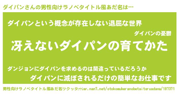 | ヘコむあだ名 | 『ダイパン(笑)』『ダイにゅー』 |