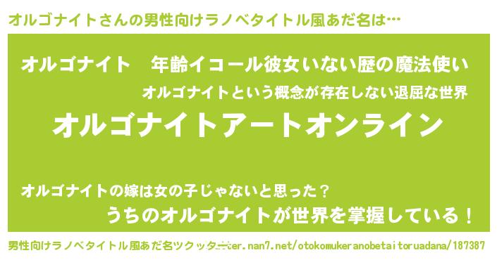 | ヘコむあだ名 | 『オルにー』『オルゴナイト(苦笑)』 |