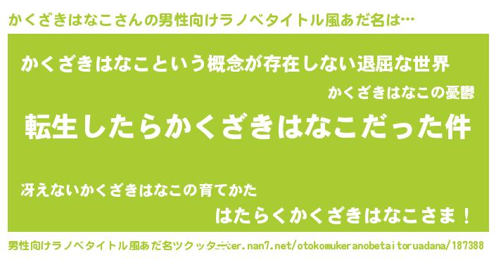 | 女子向けラノベタイトル風あだ名 | 『かくざきはなこの玉の輿計画!』 |