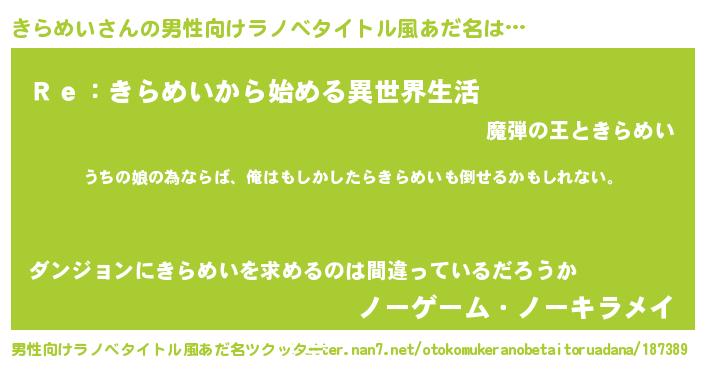 | 女子向けラノベタイトル風あだ名 | 『きらめいの婚約者』『闇のきらめい』 |