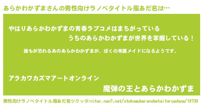 | 意味不明あだ名 | 『永久保存あらかわかずま』 |