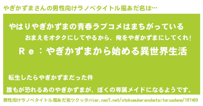| 女子向けラノベタイトル風あだ名 | 『闇のやぎかずま』 |