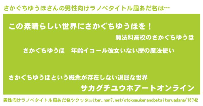 | 女子向けラノベタイトル風あだ名 | 『さかぐちゆうほの玉の輿計画!』 |