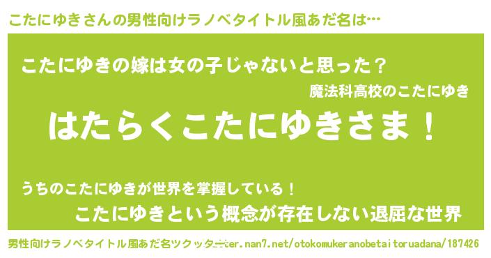 | 胡散臭い通販商品みたいなあだ名 | 『信頼と実績のサプリメント…その名も「こたにゆき」』 |