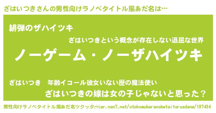 ざはいつきさんの男性向けラノベタイトル風あだ名をツクッター!