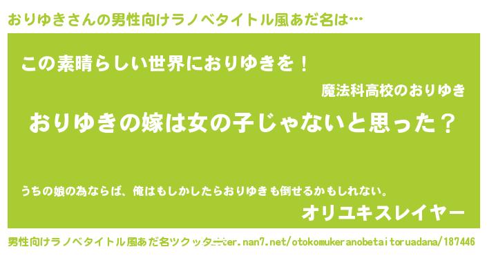 | ヒーロー風カッコイイあだ名 | 『炎刃騎士オリ』『仮面オリダー』 |