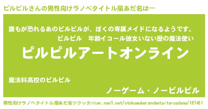 女子向けラノベタイトル風あだ名 | 『ピルピル姫と円卓の騎士』 |