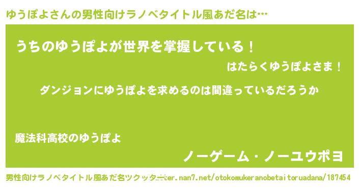 | 女子向けラノベタイトル風あだ名 | 『ゆうぽよは平凡を望む』 |
