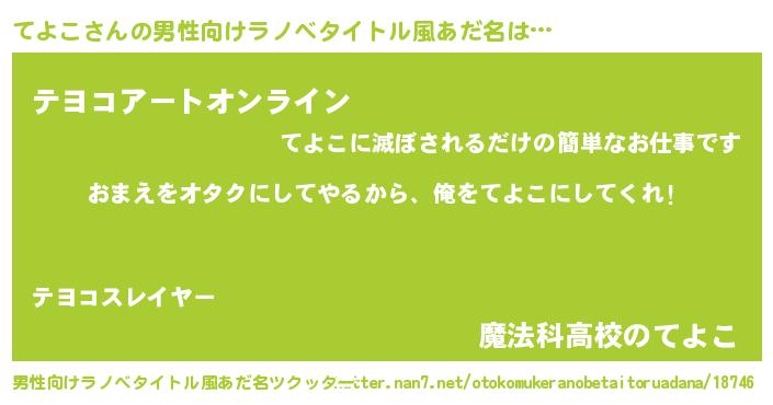 | 女子向けラノベタイトル風あだ名 | 『てよこ夫妻のなれそめ』 |
