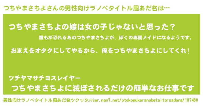 | 女子向けラノベタイトル風あだ名 | 『つちやまさちよ夫妻のなれそめ』 |