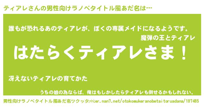 | ヘコむあだ名 | 『ティアレ(笑)』『なまこ酢』 |