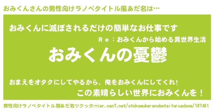 | ヘコむあだ名 | 『おみっふぃ~』『なまこ酢』 |