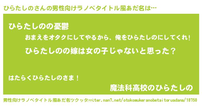 | 女子向けラノベタイトル風あだ名 | 『ひらたしのの卵を拾いまして』 |
