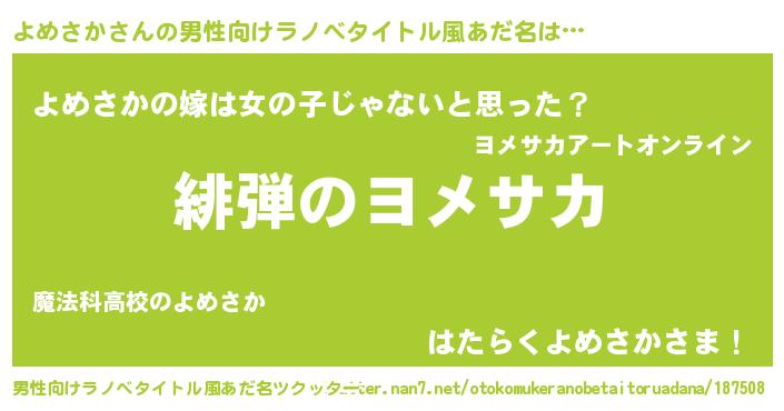 | 意味不明あだ名 | 『とにかく怪しいよめさか』 |