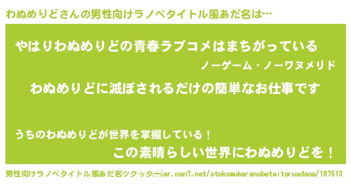 | 意味不明あだ名 | 『わぬめりどフォーエバー』 |