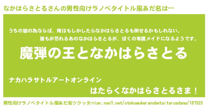 | 女子向けラノベタイトル風あだ名 | 『なかはらさとるが死なない童話 林檎のなかはらさとるの診療簿』 |