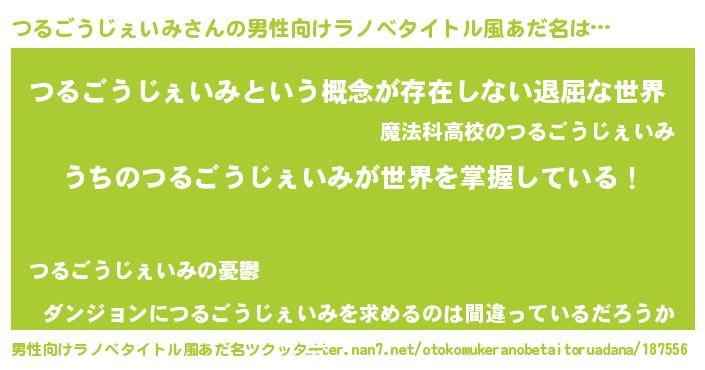 | 女子向けラノベタイトル風あだ名 | 『男装つるごうじぇいみの憂鬱な任務』 |