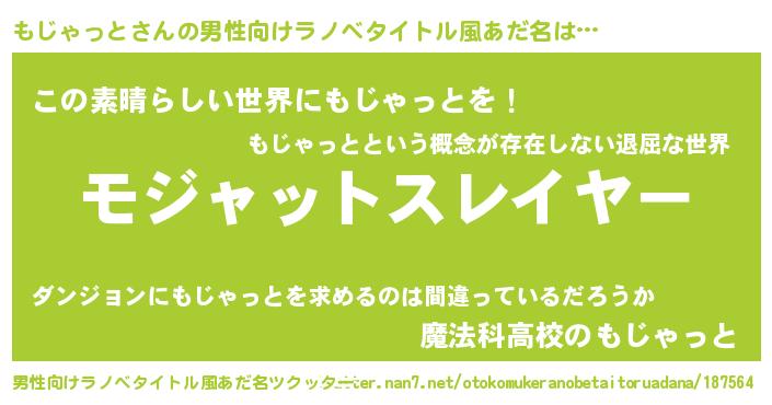 | ヒーロー風カッコイイあだ名 | 『仮面モジダー』『最強戦士モジャット』 |