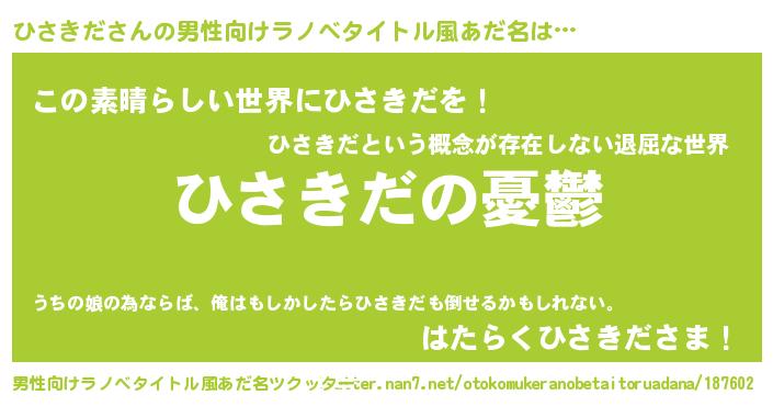 | 胡散臭い通販商品みたいなあだ名 | 『必ず成功する霊験あらたかなお札…その名も「ひさきだ」』 |