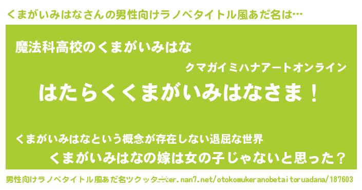 | 意味不明あだ名 | 『自称くまがいみはな』 |