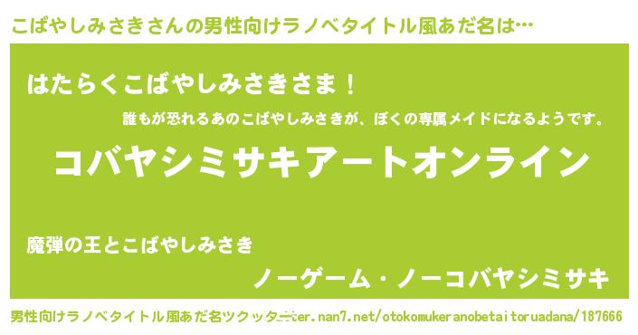 | 女子向けラノベタイトル風あだ名 | 『こばやしみさき姫と円卓の騎士』 |