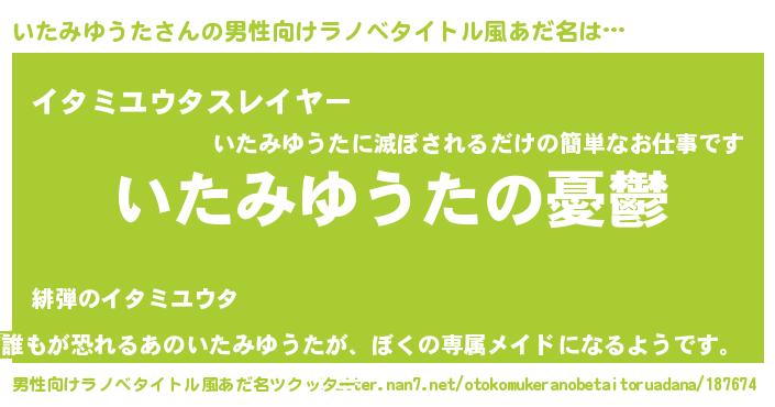 | 女子向けラノベタイトル風あだ名 | 『(仮)いたみゆうたのやんごとなき事情』 |
