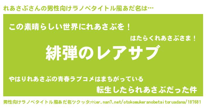 | 意味不明あだ名 | 『住所不定無職れあさぶ(43歳)』 |
