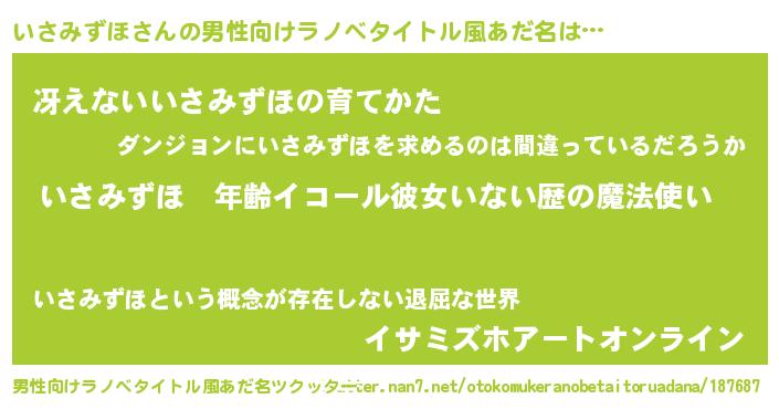 | 女子向けラノベタイトル風あだ名 | 『いさみずほの玉の輿計画!』 |