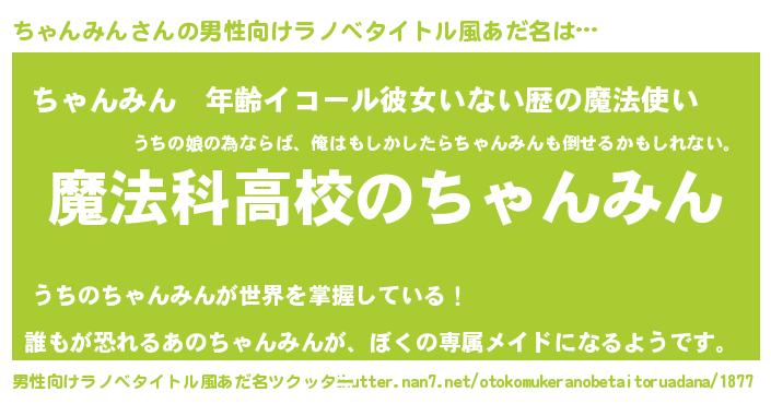 | 女子向けラノベタイトル風あだ名 | 『ちゃんみんなんてお断りですっ。』 |