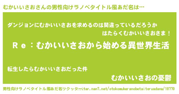 | 意味不明あだ名 | 『自称むかいいさお』 |