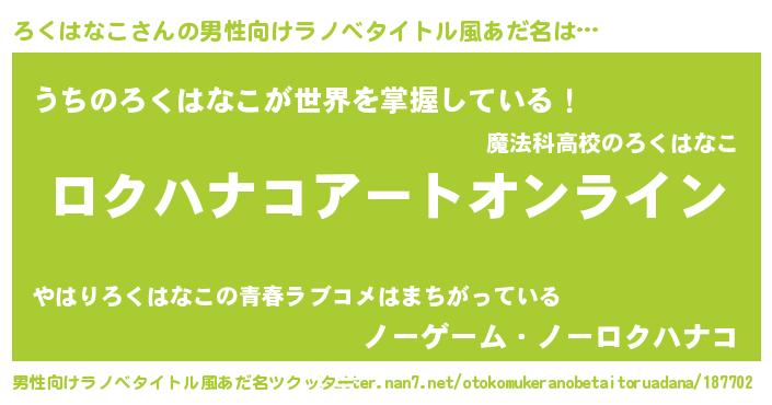 | 女子向けラノベタイトル風あだ名 | 『ろくはなこ姫と円卓の騎士』 |