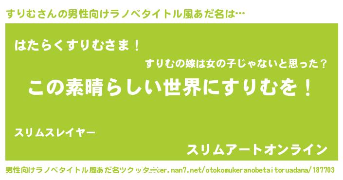 | 意味不明あだ名 | 『住所不定無職すりむ(53歳)』 |