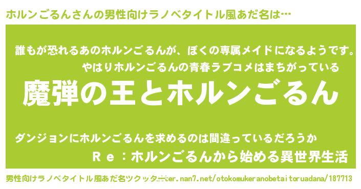 | 意味不明あだ名 | 『住所不定無職ホルンごるん(68歳)』 |