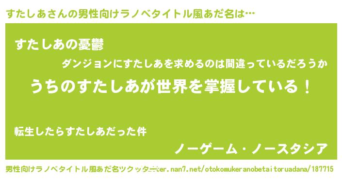 | 胡散臭い通販商品みたいなあだ名 | 『億万長者になれる霊験あらたかなお札…その名も「すたしあ」』 |
