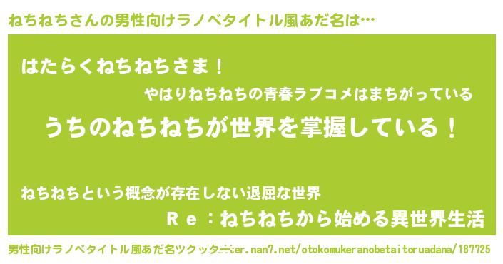 | 可愛いあだ名 | 『ねーみん』『ねちうちぇる』 |
