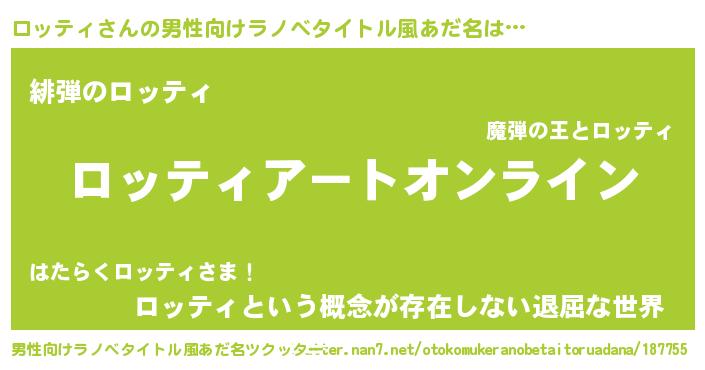 | 女子向けラノベタイトル風あだ名 | 『ロッティ姫と円卓の騎士』 |