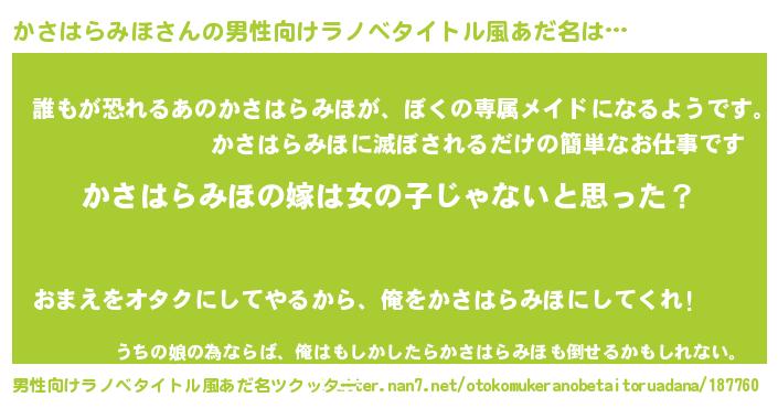 | 胡散臭い通販商品みたいなあだ名 | 『全米が絶賛したサプリメント…その名も「かさはらみほ」』 |