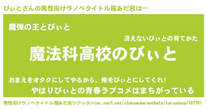 | 意味不明あだ名 | 『自称びぃと』『住所不定無職びぃと(2歳)』 |
