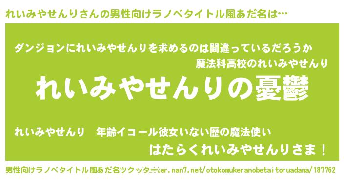 | 胡散臭い通販商品みたいなあだ名 | 『必ず成功する霊験あらたかなお札…その名も「れいみやせんり」』 |