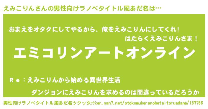 | 女子向けラノベタイトル風あだ名 | 『えみこりん姫と円卓の騎士』 |