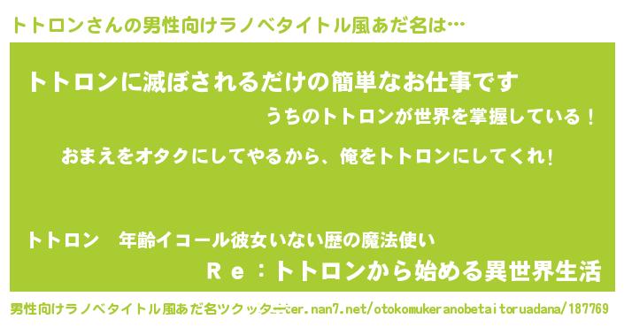 | 胡散臭い通販商品みたいなあだ名 | 『100人中100人が認めたマグネット磁石…その名も「トトロン」』 |