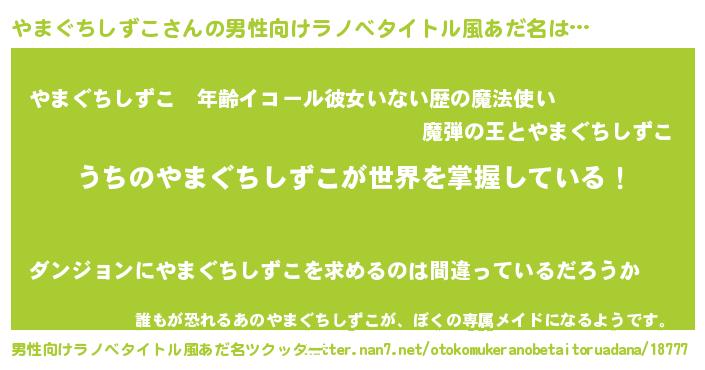 | ヘコむあだ名 | 『やまぐちしずこ(笑)』『やまぷりん』 |