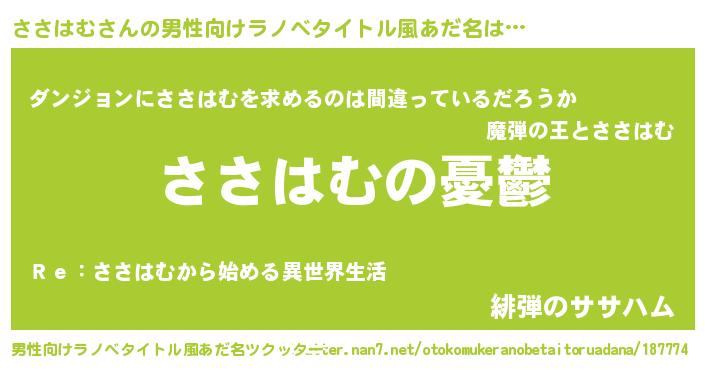 | 女子向けラノベタイトル風あだ名 | 『ささはむ姫と円卓の騎士』 |